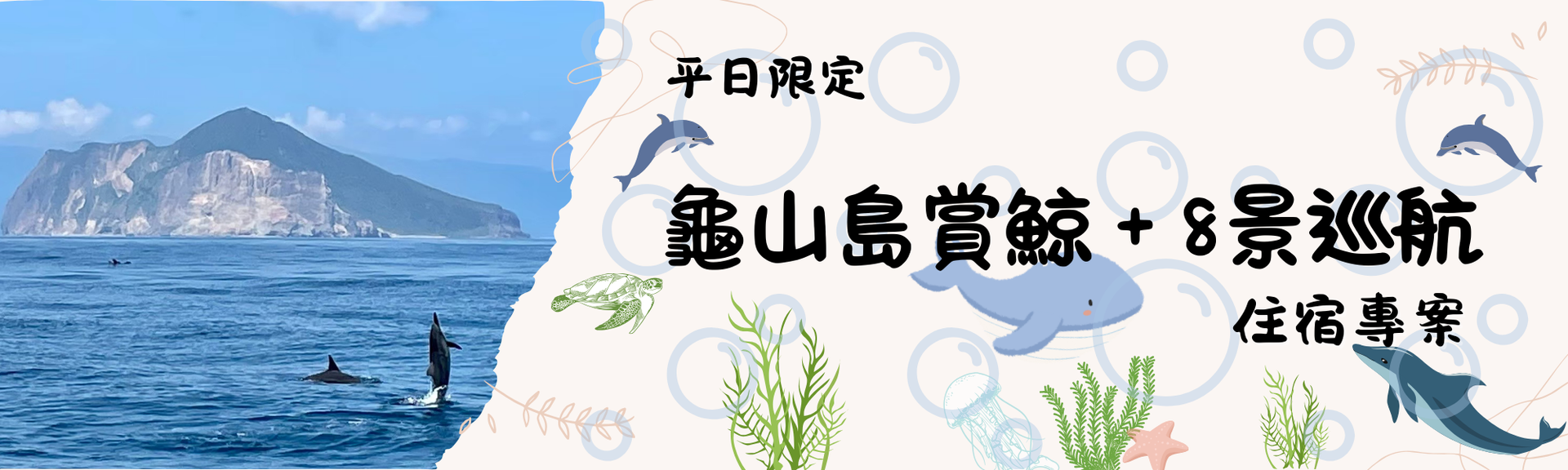 2026 平日限定【龜山島賞鯨+八景巡航】住宿專案