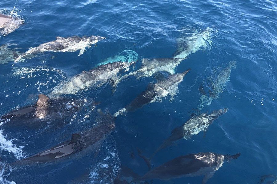 自頭城烏石港碼頭搭船出海尋找鯨豚蹤跡,專人解說海洋生態,並繞行龜山島海域,欣賞「龜山八景」、牛奶海奇景(需自行開車前往烏石港搭船)